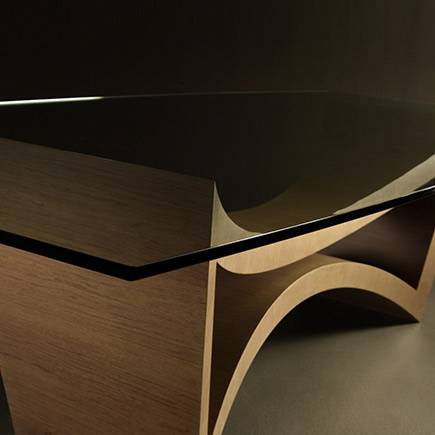 Финал принадлежит Bizzotto Italia: монументальные поверхности из корня дерева соединяются с черным металлическим основанием. Каждый рисунок уникален и неповторим, словно произведение природы, превращенное в центральный акцент элитного интерьера.