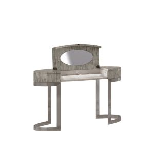 Цей туалетний столик створений для тих, хто цінує естетику та функціональність. Центральна частина відкривається і приховує дзеркало, що робить його ідеальним для щоденних б’юті-процедур. Шпон Сукупіра з глянцевим покриттям підкреслює природну текстуру дерева, а металеві опори з брашованою обробкою додають сучасної вишуканості.