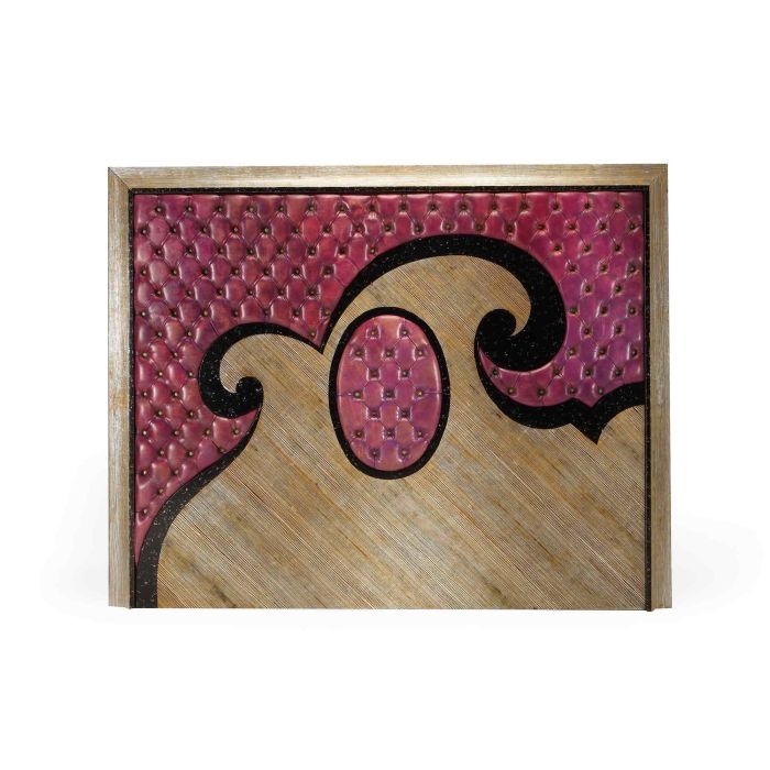 Изголів’я Volterra від Sergio Villa — яскравий дизайнерський акцент, що поєднує етруське натхнення з сучасною естетикою. Лакована дерев’яна структура з оздобленням Etruska, фасад з дерева «тисяча прожилок» з позолотою та посрібленням, шкіряна оббивка з люмінесцентними зеленими ґудзиками — ідеальний вибір для вишуканої спальні.
